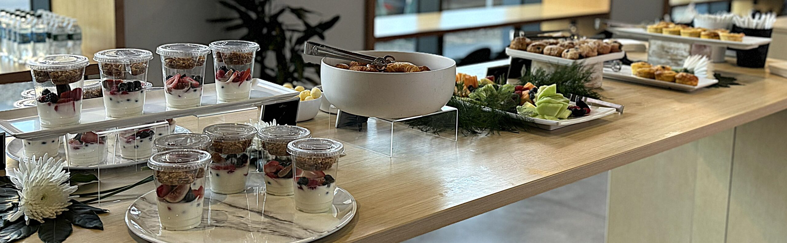 We offer a variety of catering options for all day conferences, including a fully staffed experience with all food prepared on site, a delivery and set-up option with a few staff staying on site to maintain and clean throughout the day or a delivery and set-up option with no staff remaining.